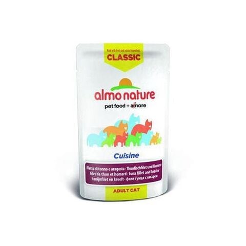 マグロフィレ55%、マグロスープ39.2%、ロブスター4.1、米1%、ナチュラルフレーバー0.7%、パセリ0.01%、ビタミンA1325IU/kg、ビタミンE15mg/kg、タウリン160mg/kg