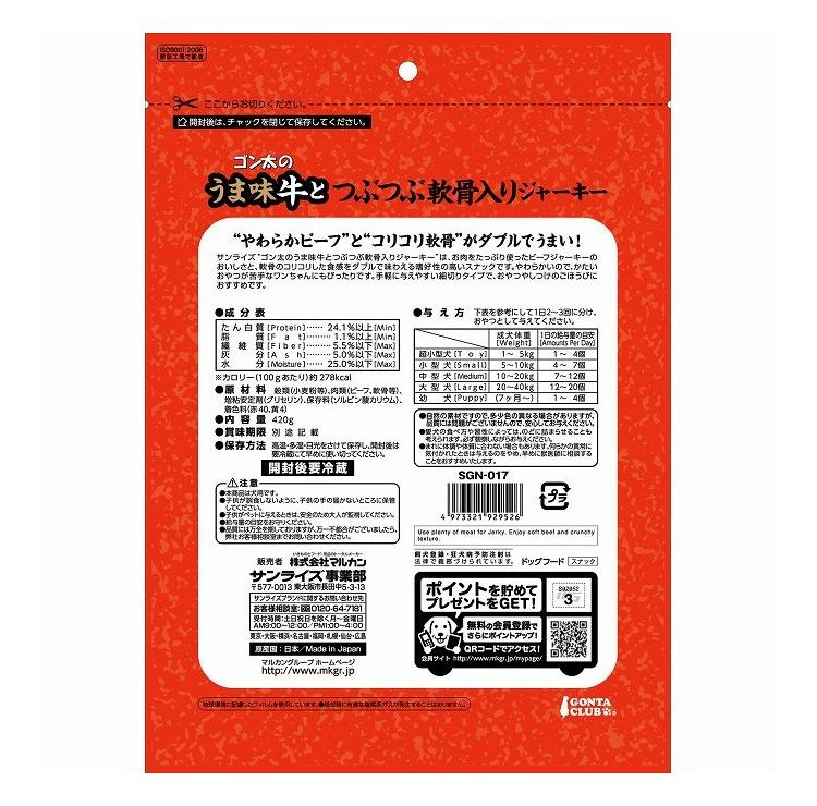 【4個セット】 マルカン サンライズ ゴン太のうま味牛とつぶつぶ軟骨入りジャーキー 420g【ポイント10倍】 【送料無料】