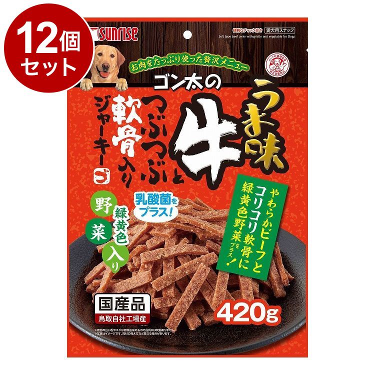 【12個セット】 マルカン サンライズ ゴン太のうま味牛とつぶつぶ軟骨入りジャーキー 緑黄色野菜入り 420g【ポイント10倍】 【送料無料】
