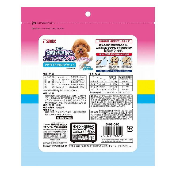 【8個セット】 マルカン サンライズ ゴン太の歯磨き専用ガム ブレスクリアソフト アパタイトカルシウム入り S32本【ポイント10倍】 【送料無料】