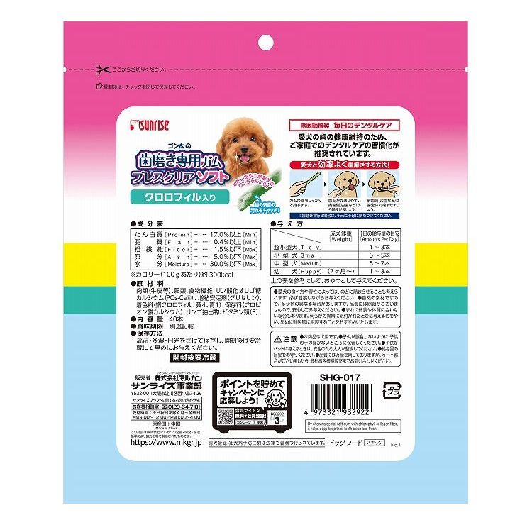 【4個セット】 マルカン サンライズ ゴン太の歯磨き専用ガム ブレスクリアソフト クロロフィル入り S32本【ポイント10倍】 【送料無料】