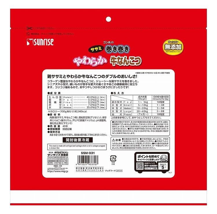 【2個セット】 マルカン サンライズ ゴン太のササミ巻き巻き やわらか牛なんこつ 40本【ポイント10倍】 【送料無料】
