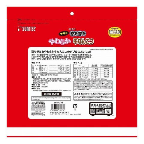 【3個セット】 マルカン サンライズ ゴン太のササミ巻き巻き やわらか牛なんこつ 40本【ポイント10倍】 【送料無料】