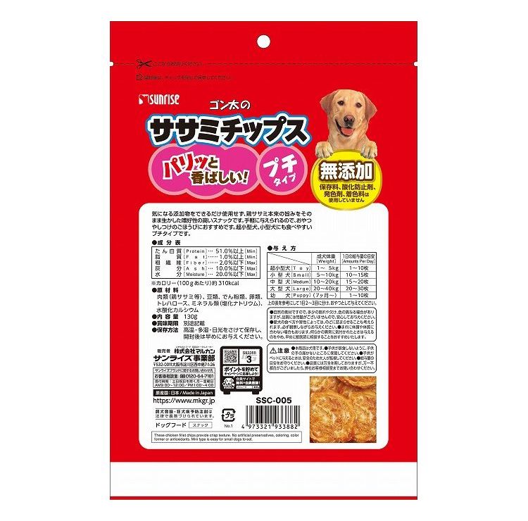 【2個セット】 マルカン サンライズ ゴン太のササミチップス プチタイプ 130g【ポイント10倍】
