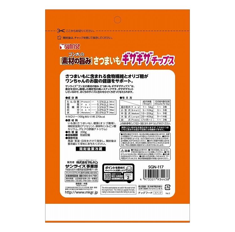【12個セット】 マルカン サンライズ ゴン太の素材の旨み さつまいも ギザギザチップス200g【ポイント10倍】 【送料無料】