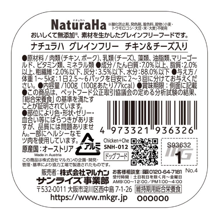 【36個セット】 マルカン サンライズ ナチュラハ グレインフリー チキン&チーズ入 100g【ポイント10倍】 【送料無料】