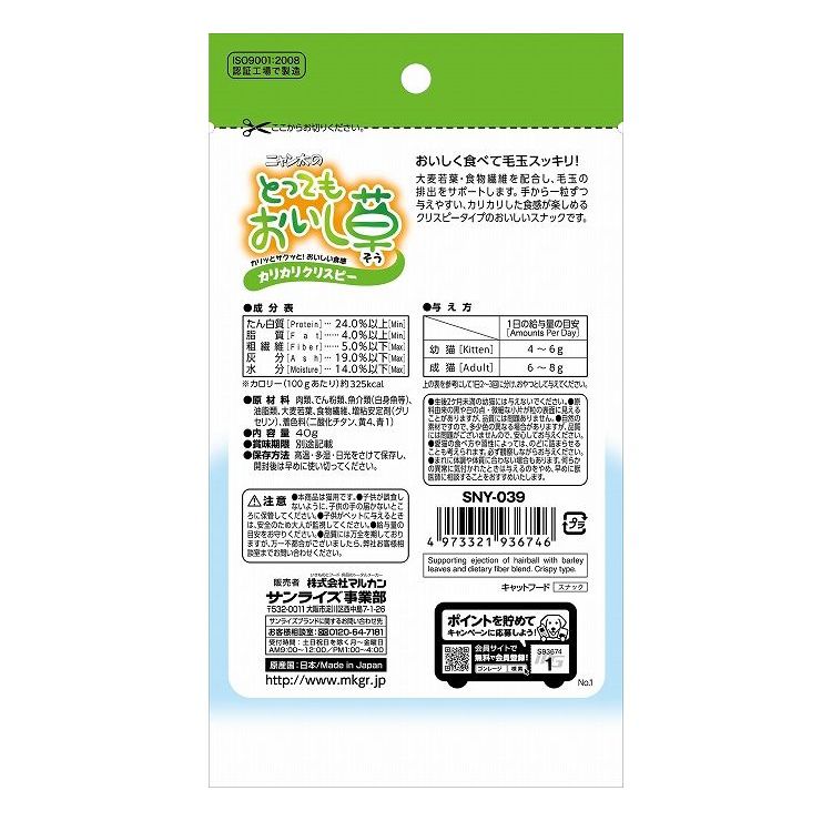 【10個セット】 マルカン サンライズ ニャン太のとってもおいし草 カリカリクリスピー 40g【ポイント10倍】 【送料無料】
