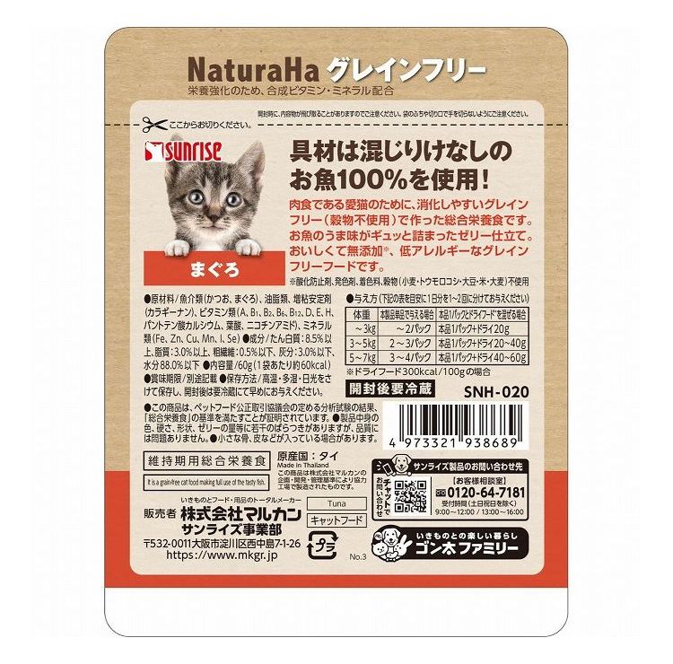 【12個セット】 マルカン サンライズ ナチュラハ グレインフリー まぐろ 60g【ポイント10倍】