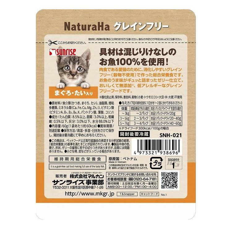 【48個セット】 マルカン サンライズ ナチュラハ グレインフリー まぐろ・たい入り 60g【ポイント10倍】 【送料無料】