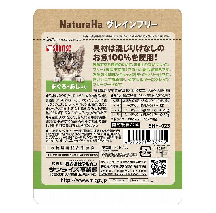 【24個セット】 マルカン サンライズ ナチュラハ グレインフリー まぐろ・あじ入り 60g【ポイント10倍】 【送料無料】