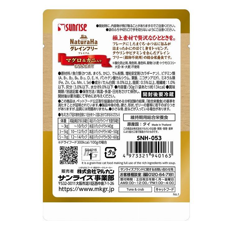 【24個セット】 マルカン サンライズ ナチュラハ グレインフリー Premium マグロ&カニ入り とろみ仕立て 30g【ポイント10倍】 【送料無料】