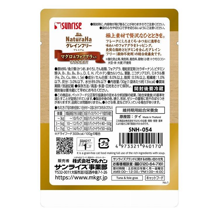 【24個セット】 マルカン サンライズ ナチュラハ グレインフリー Premium マグロ&フォアグラ入り とろみ仕立て 30g【ポイント10倍】 【送料無料】