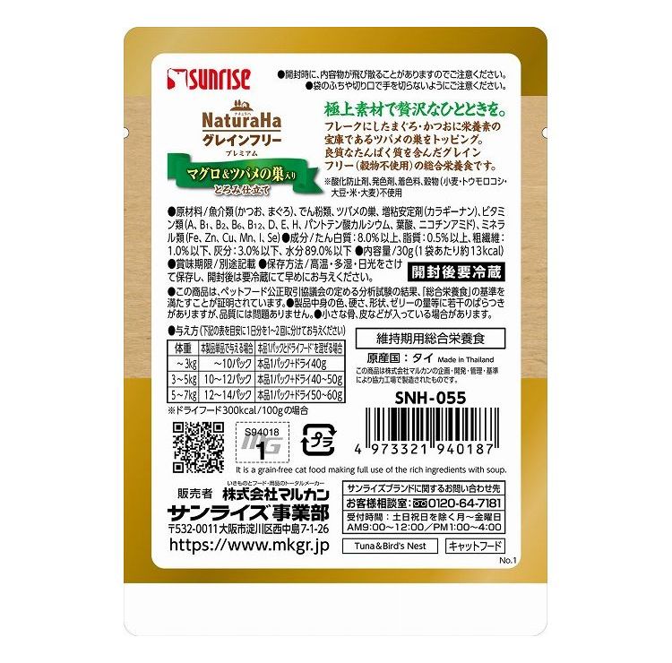 【12個セット】 マルカン サンライズ ナチュラハ グレインフリー Premium マグロ&ツバメの巣入り とろみ仕立て 30g【ポイント10倍】