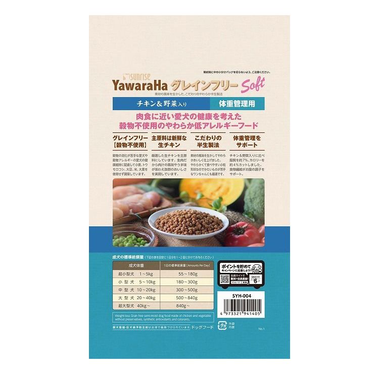 【4個セット】 マルカン サンライズ ヤワラハ グレインフリー ソフト チキン&野菜入り 体重管理用 600g【ポイント10倍】 【送料無料】