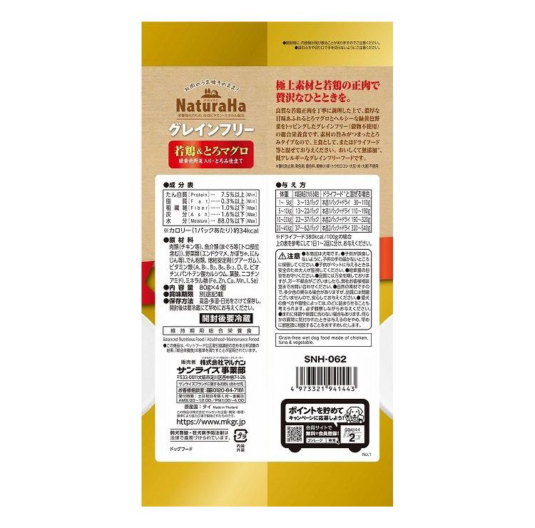 【4個セット】 マルカン サンライズ ナチュラハ グレインフリー Premium 若鶏&とろマグロ 緑黄色野菜入り・とろみ仕立て 4個【ポイント10倍】 【送料無料】