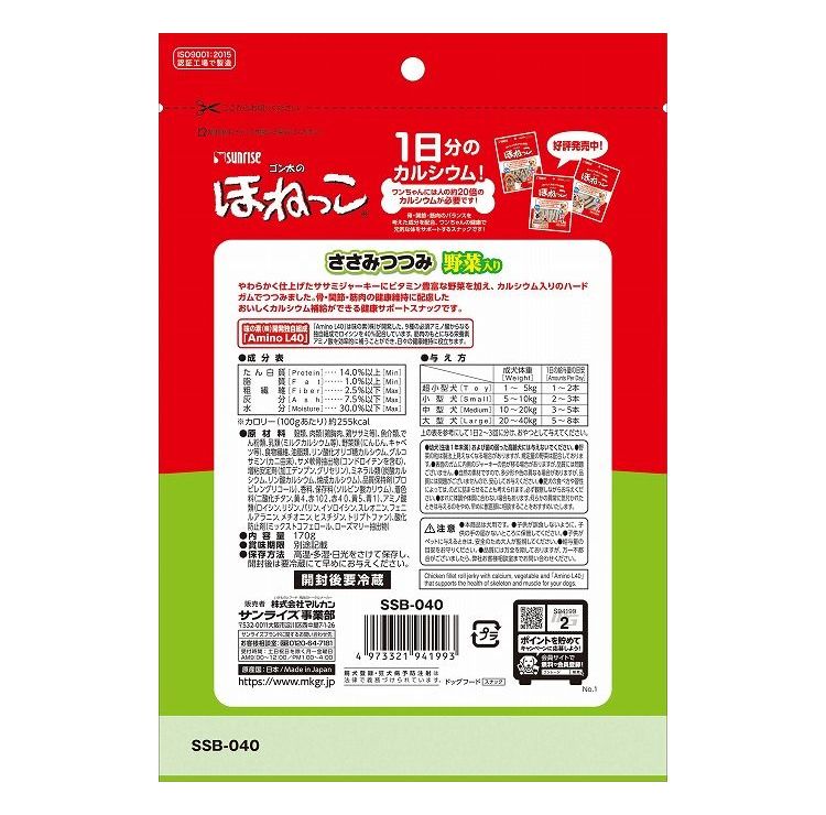 【6個セット】 マルカン サンライズ ゴン太のほねっこ ささみつつみ 野菜入り 170g【ポイント10倍】 【送料無料】