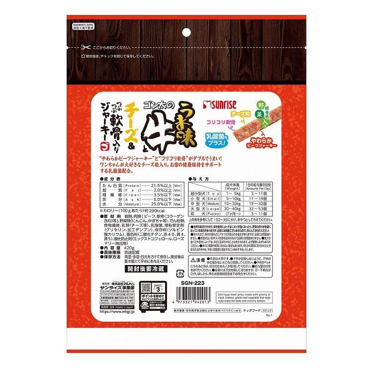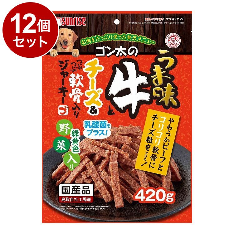 【12個セット】 マルカン サンライズ ゴン太のうま味牛とチーズ&つぶつぶ軟骨入りジャーキー 緑黄色野菜入り 420g【ポイント10倍】 【送料無料】