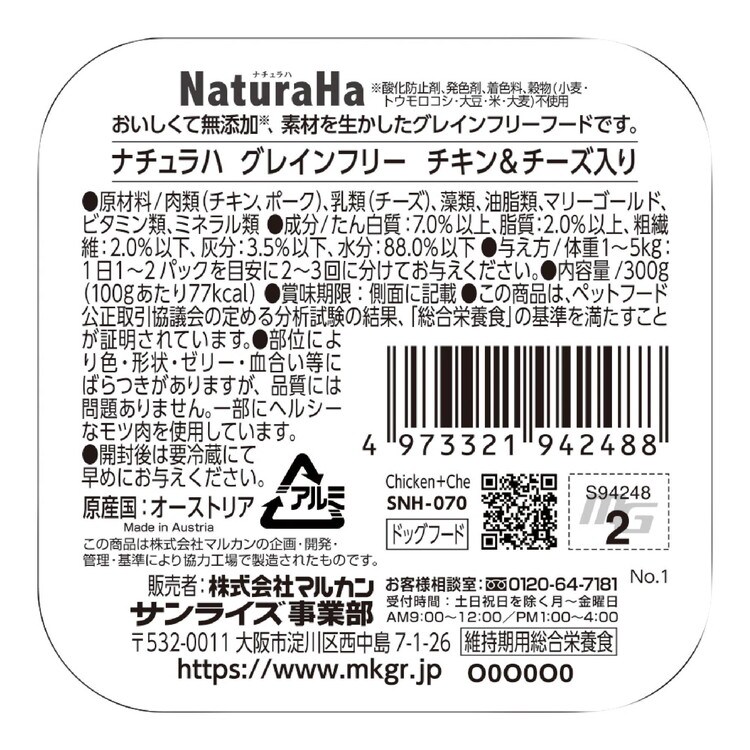 【6個セット】 マルカン サンライズ ナチュラハ グレインフリー チキン&チーズ入り 300g【ポイント10倍】 【送料無料】