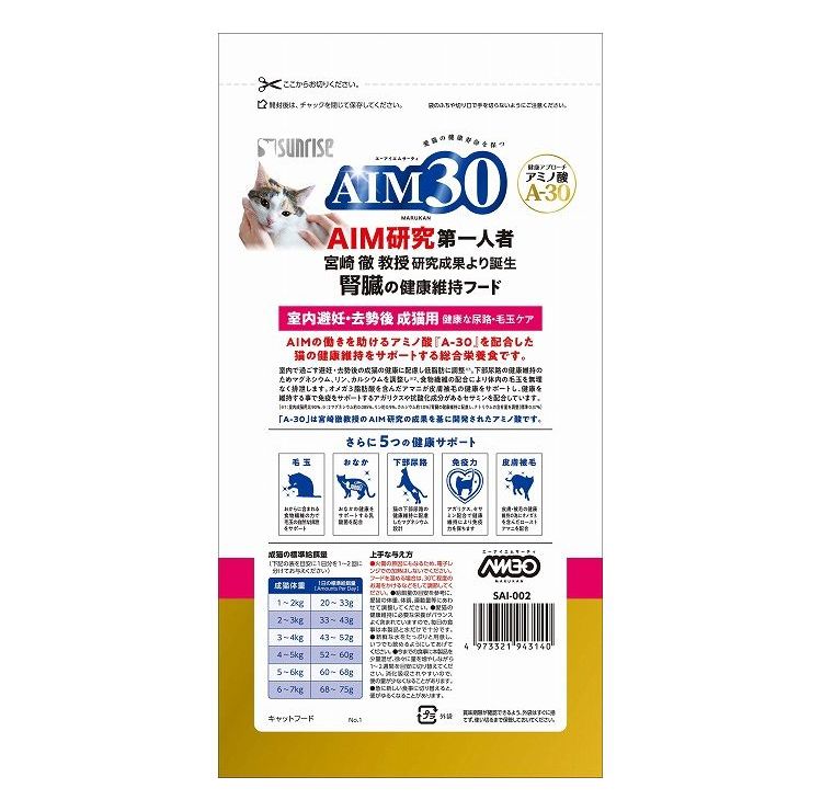 【2個セット】 マルカン サンライズ AIM30 室内避妊・去勢後成猫用 健康な尿路・毛玉ケア 600g【ポイント10倍】 【送料無料】