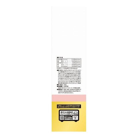 トウモロコシ、グルテンミール、ビーフミール、ポークミール、動物性油脂、チキンミール、フィッシュミール(DHAを含む)、小麦粉、フィッシュエキス、植物性油脂、酵母(ヌクレオチドを含む)、チキンレバーパウダー、おからパウダー、まぐろ・かつお削りぶしパウダー、ローストアマニ、オリゴ糖、乳酸菌、アガリクス、クランベリー、セサミン、ミネラル類(Na、Cl、Ca、P、K、Zn、Fe、Cu、Co、Mn、I)、アミノ酸類(シスチン、メチオニン、トリプトファン、タウリン)、ビタミン類(A、B1、B2、B6、B12、C、D3、E、K3、コリン、ニコチン酸、パントテン酸、ビオチン、葉酸)、調味料、酸化防止剤(ミックストコフェロール、ハーブ抽出物)