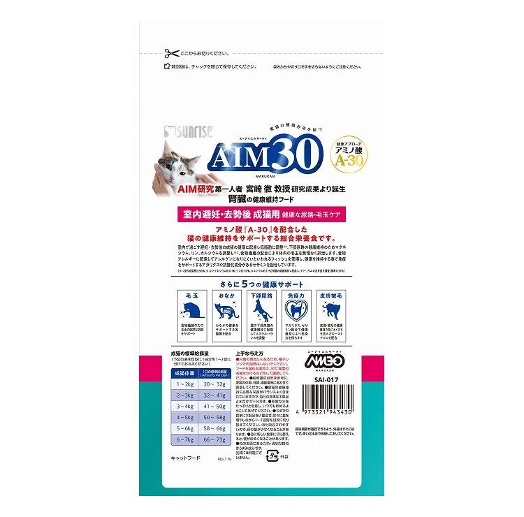 【2個セット】 マルカン サンライズ AIM30 室内避妊・去勢後成猫用 健康な尿路・毛玉ケア フィッシュ 600g【ポイント10倍】 【送料無料】