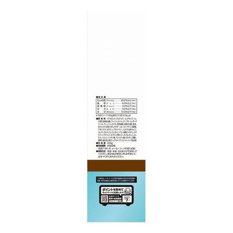 トウモロコシ、グルテンミール、チキンミール、小麦粉、動物性油脂、フィッシュミール、ビーフミール、ポークミール、フィッシュエキス、食物繊維、植物性油脂、酵母、まぐろ・かつお削りぶしパウダー、ローストアマニ、乳酸菌、アガリクス、セサミン、クランベリー、ミネラル類(Na、Cl、Ca、P、K、Zn、Fe、Cu、Co、Mn、I)、アミノ酸類(シスチン、メチオニン、タウリン)、ビタミン類(A、B1、B2、B6、B12、C、D3、E、K3、コリン、ニコチン酸、パントテン酸、ビオチン、葉酸)、調味料、酸化防止剤(ミックストコフェロール、ハーブ抽出物)