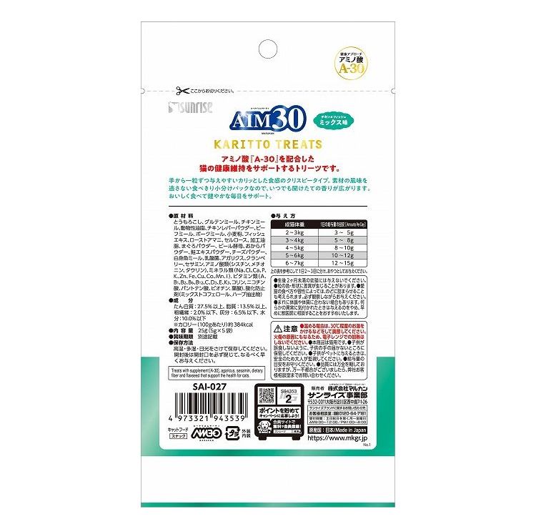 【15個セット】 マルカン サンライズ AIM30 カリッとトリーツ ミックス味 5g×5袋【ポイント10倍】 【送料無料】