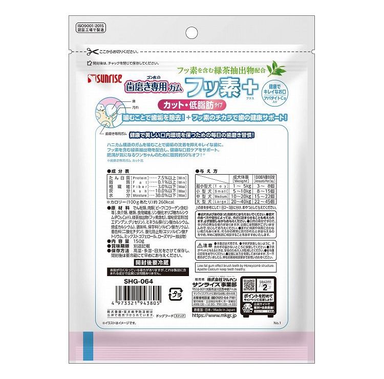 【4個セット】 マルカン サンライズ ゴン太の歯磨き専用ガム フッ素プラス カット アパタイトカルシウム入り 低脂肪 150g【ポイント10倍】 【送料無料】
