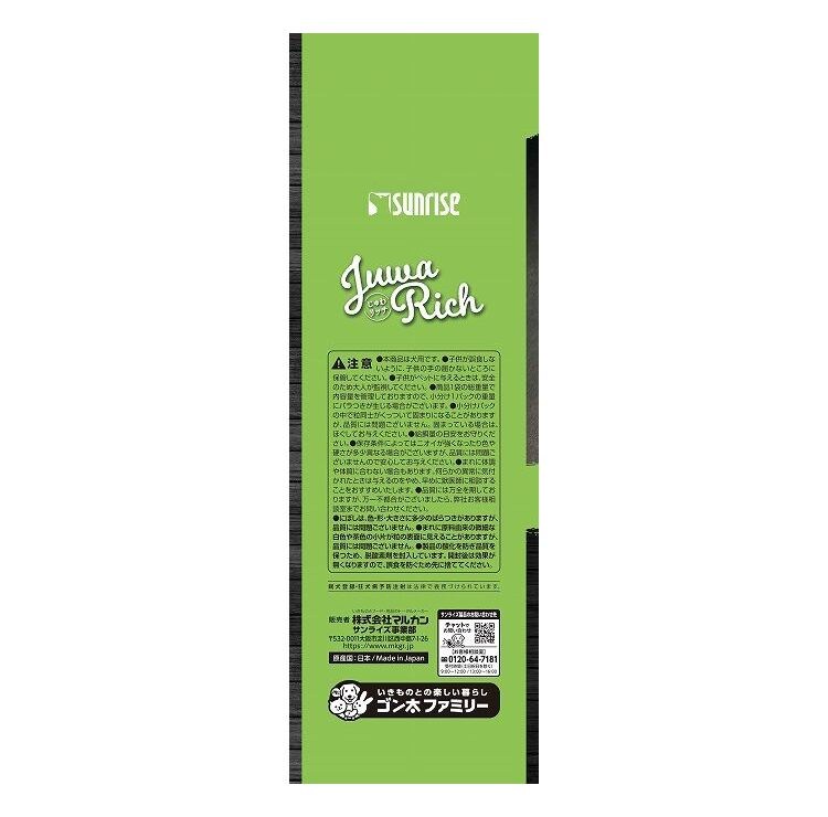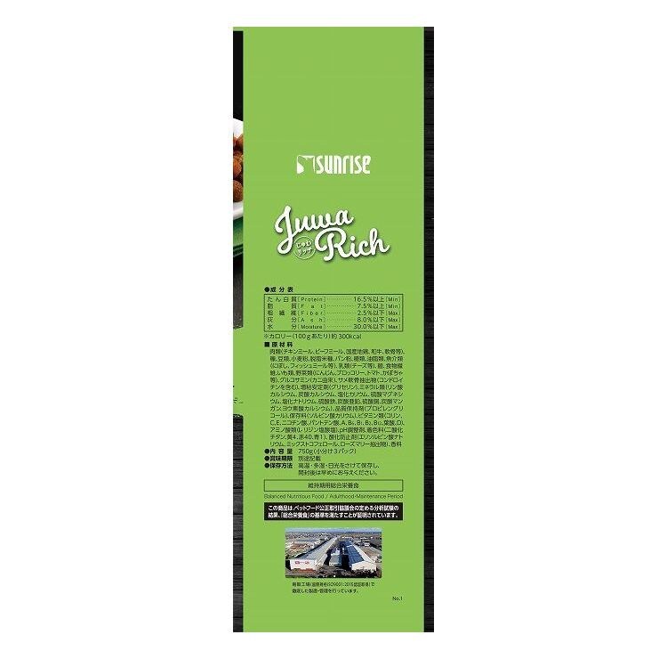 国産チキンを主原料に使用し、独自製法でじゅわっと溢れる旨みのやわらか小粒に仕上げ、圧倒的な美味しさを実現したフードです。国産ブランドの地鶏を配合し、緑黄色野菜で食のバランスを整え、軟骨と煮干しをトッピングした彩り豊かなフードです。