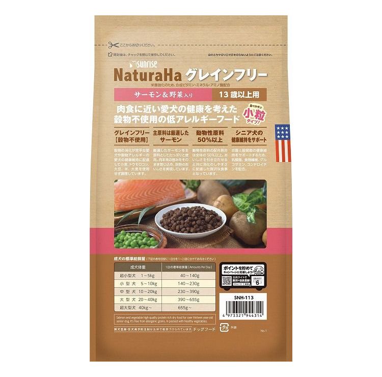 【2個セット】 マルカン サンライズ ナチュラハ グレインフリー サーモン&野菜入り 13歳以上用 小粒 700g【ポイント10倍】 【送料無料】