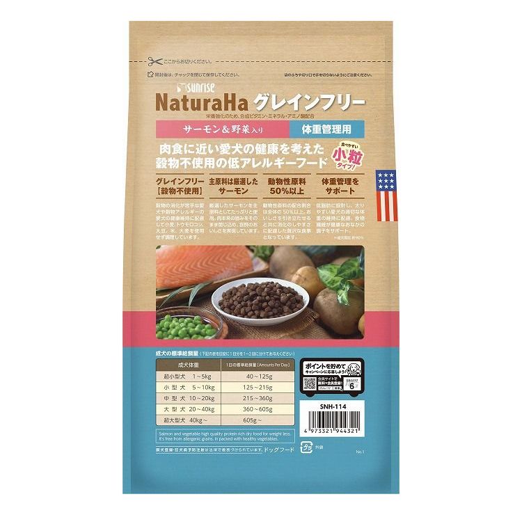 【2個セット】 マルカン サンライズ ナチュラハ グレインフリー サーモン&野菜入り 体重管理用 小粒 700g【ポイント10倍】 【送料無料】