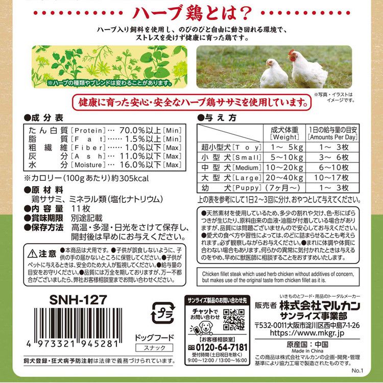【12個セット】 マルカン サンライズ ナチュラハ グレインフリー ハーブ鶏を使用した贅沢なササミステーキ 11枚【ポイント10倍】 【送料無料】