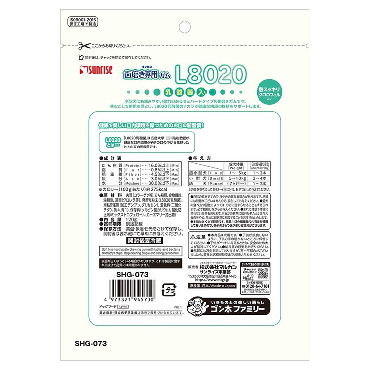 【12個セット】 マルカン サンライズ ゴン太の歯磨き専用ガムSSサイズ L8020乳酸菌入り クロロフィル入り 120g【ポイント10倍】 【送料無料】
