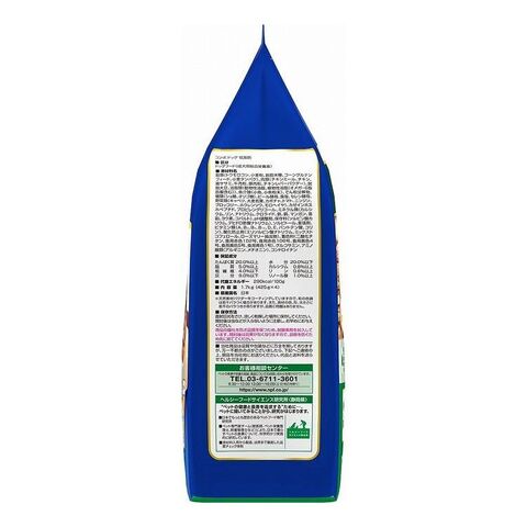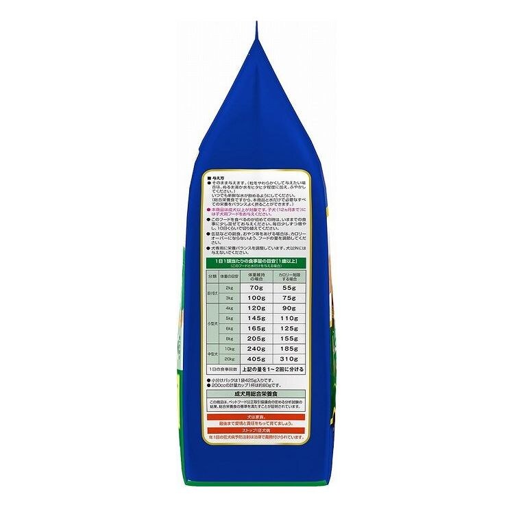 たんぱく質20.0%以上、脂質5.0%以上、粗繊維4.0%以下、灰分9.0%以下、水分20.0%以下、カルシウム0.8%以上、リン0.6%以上、リノール酸1.0%以上