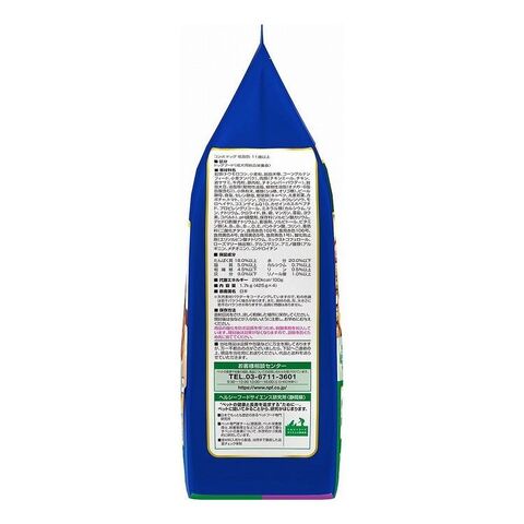 たんぱく質18.0%以上、脂質5.0%以上、粗繊維4.5%以下、灰分9.0%以下、水分20.0%以下、カルシウム0.7%以上、リン0.5%以上、リノール酸1.0%以上