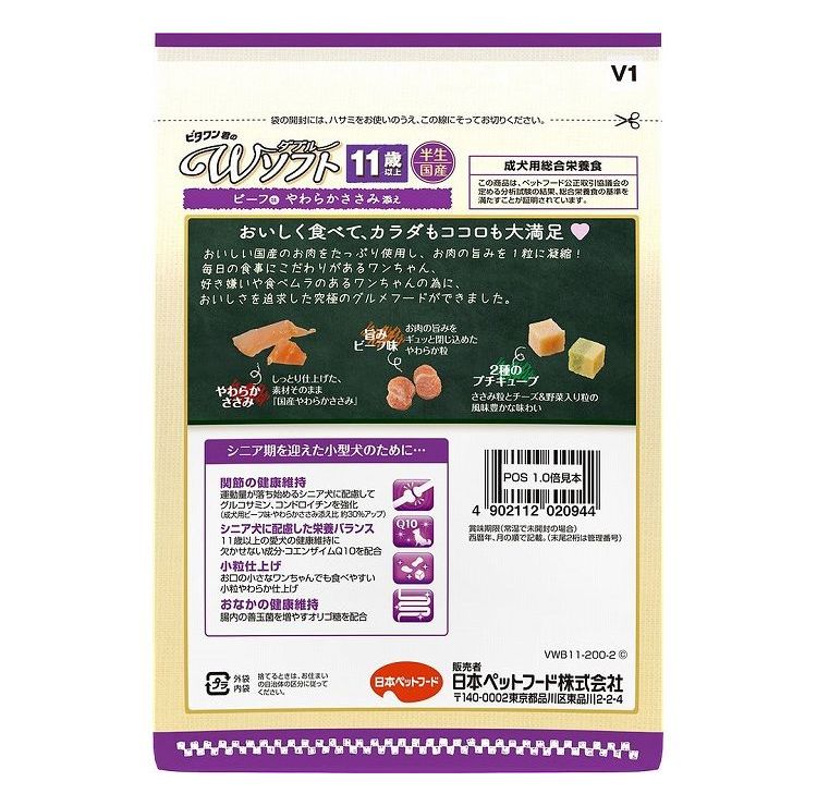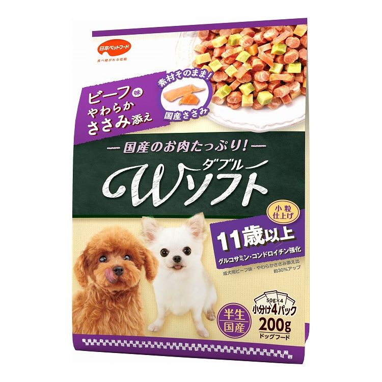 【6個セット】 日本ペットフード ビタワン君のWソフト 11歳以上 お肉を味わうビーフ味粒・やわらかささみ入り 200g【ポイント10倍】 【送料無料】