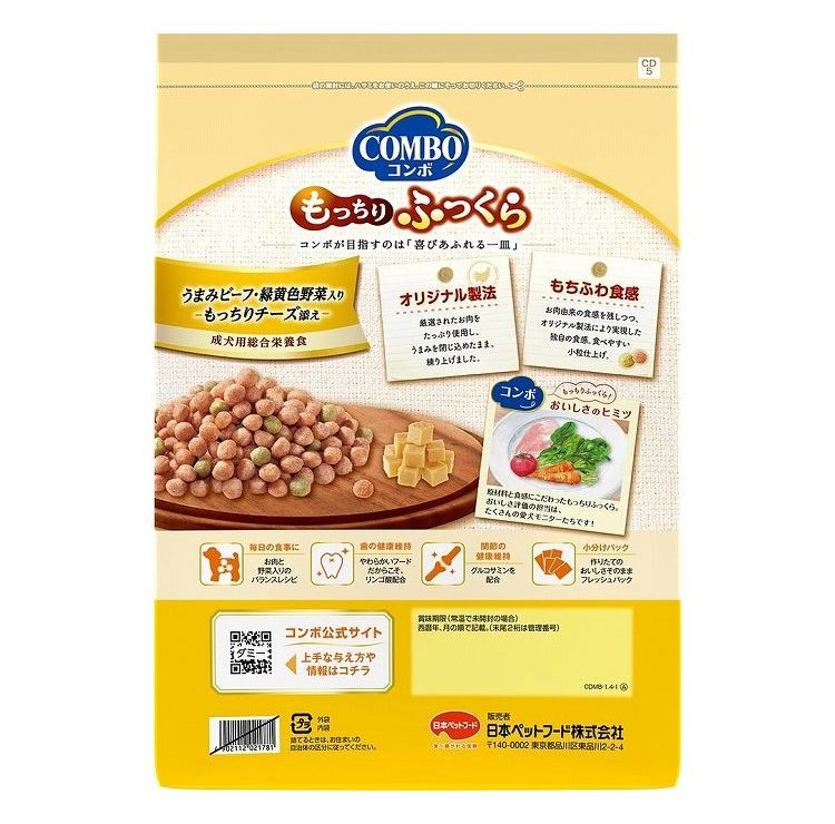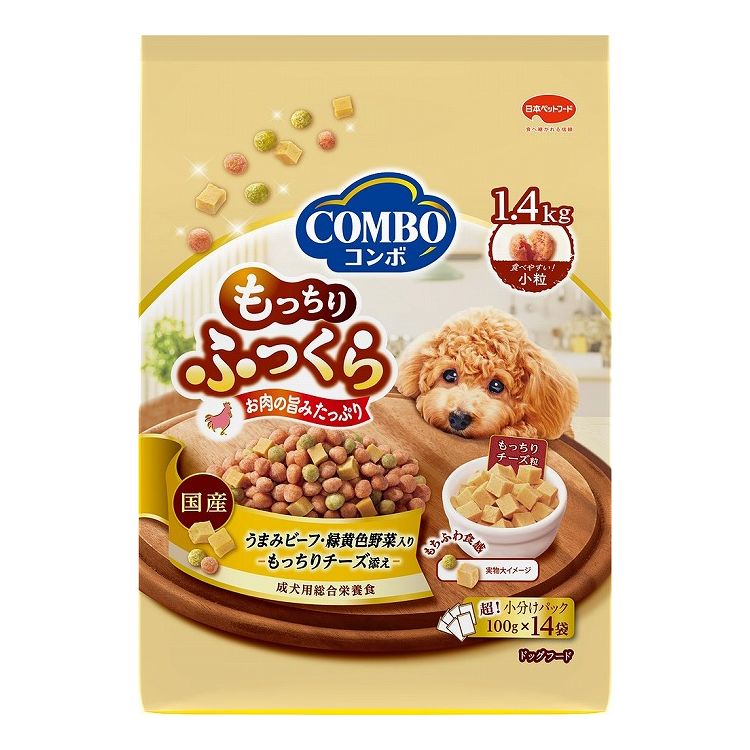 【4個セット】 日本ペットフード コンボ ドッグ もっちりふっくら うまみビーフ・もっちりチーズ添え 1.4kg (100g×14袋)【ポイント10倍】 【送料無料】