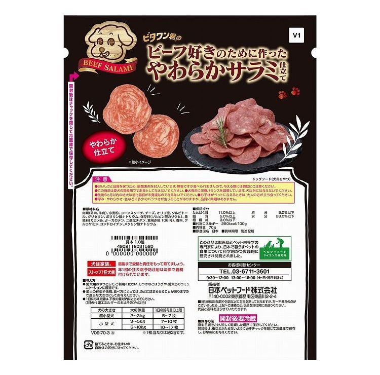 【10個セット】 日本ペットフード ビタワン君のビーフ好きのために作ったやわらかサラミ仕立て 70g【ポイント10倍】 【送料無料】