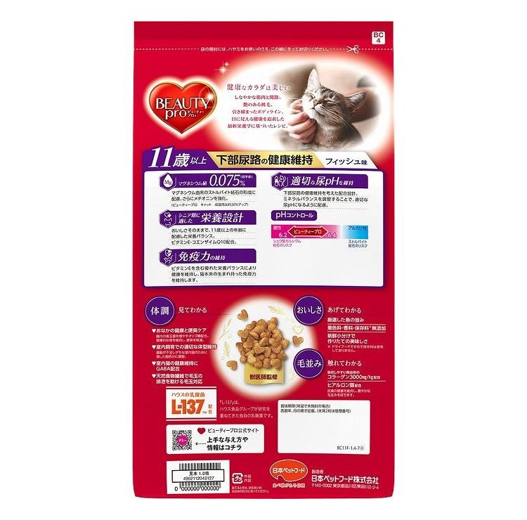【2個セット】 日本ペットフード ビューティープロ キャット 下部尿路の健康維持 11歳以上 フィッシュ味 1.4kg (280g×5袋)【ポイント10倍】 【送料無料】