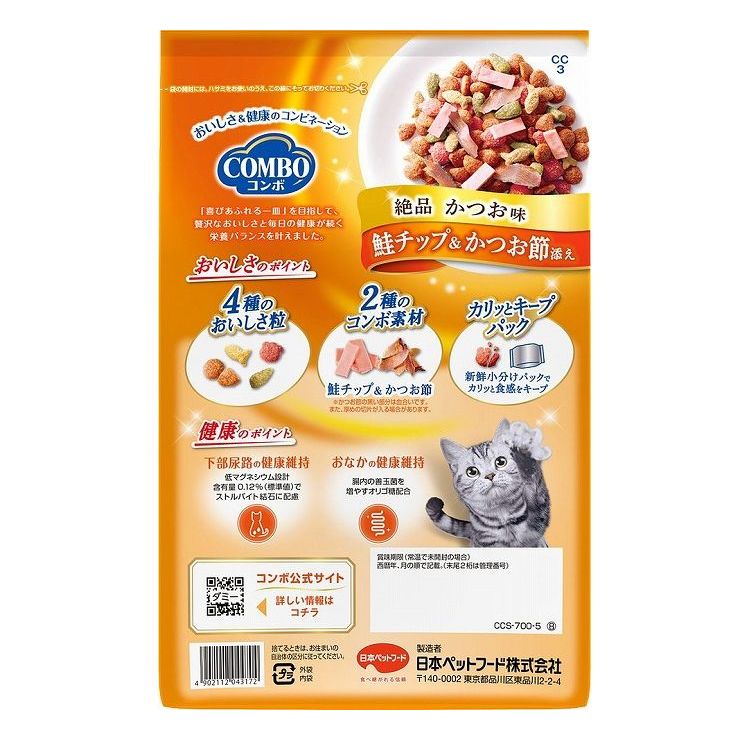 【2個セット】 日本ペットフード コンボ キャット かつお味・鮭チップ・かつお節添え 700g (140g×5)【ポイント10倍】 【送料無料】