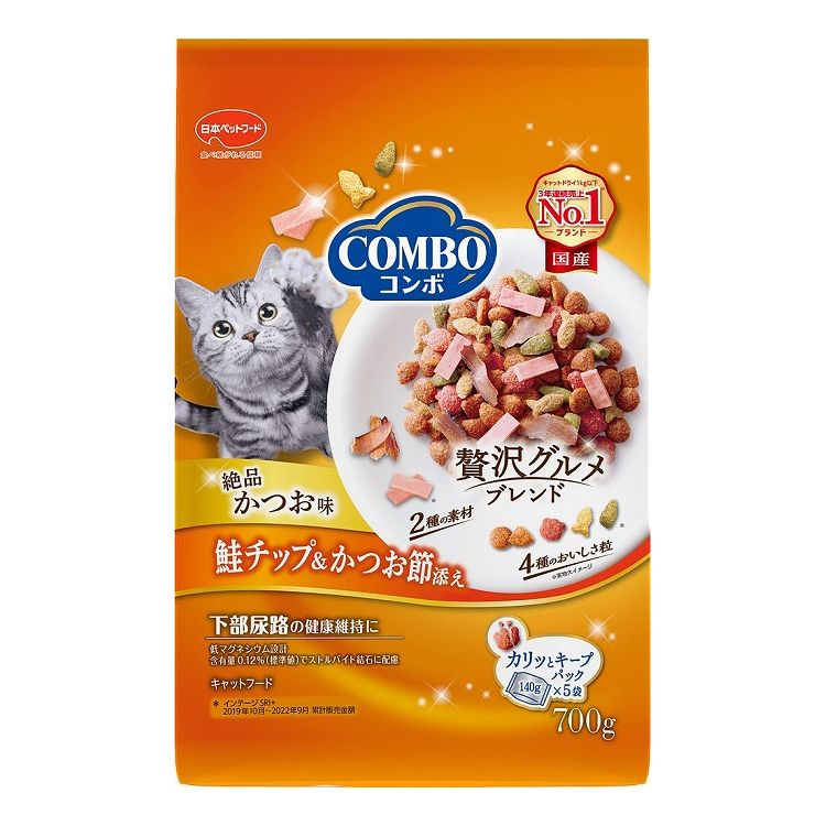 【8個セット】 日本ペットフード コンボ キャット かつお味・鮭チップ・かつお節添え 700g (140g×5)【ポイント10倍】 【送料無料】