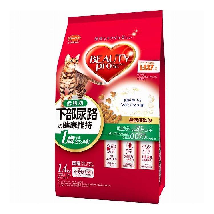 【2個セット】 日本ペットフード ビューティープロ キャット 下部尿路の健康維持 低脂肪 1歳から フィッシュ味 1.4kg (280g×5)【ポイント10倍】 【送料無料】