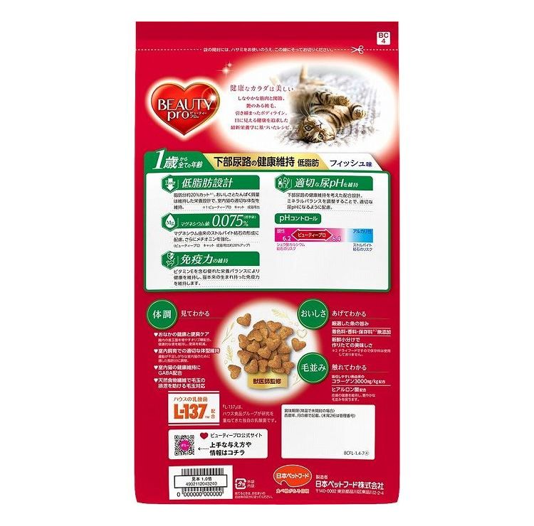 【4個セット】 日本ペットフード ビューティープロ キャット 下部尿路の健康維持 低脂肪 1歳から フィッシュ味 1.4kg (280g×5)【ポイント10倍】 【送料無料】