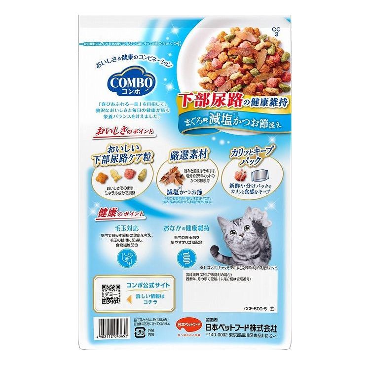 ・まぐろのおいしさたっぷりの4種粒に塩分約25%カットの減塩かつお節を添えました。(コンボ キャット使用かつお節比)