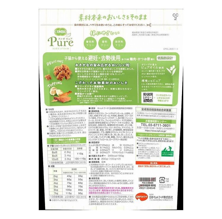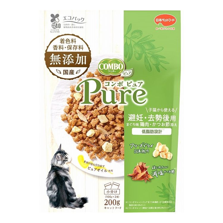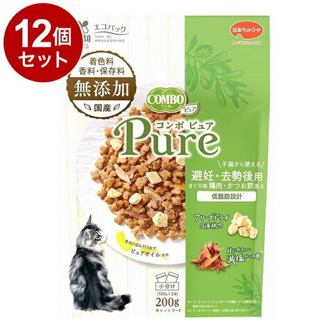 【12個セット】 日本ペットフード コンボ ピュア キャット 避妊・去勢後用 まぐろ味・鶏肉・かつお節添え 200g【ポイント10倍】 【送料無料】