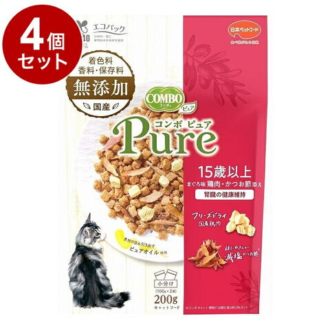 【4個セット】 日本ペットフード コンボ ピュア キャット 15歳以上 まぐろ味・鶏肉・かつお節添え 200g【ポイント10倍】 【送料無料】