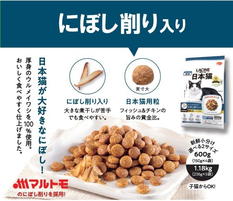 【2個セット】 日本ペットフード ラシーネ 日本猫 にぼし削り入り 600g【ポイント10倍】 【送料無料】