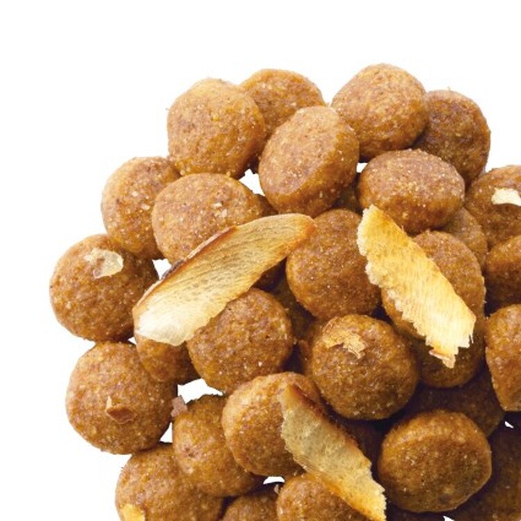 たんぱく質27.0%以上、脂質10.5%以上、粗繊維3.0%以下、灰分9.0%以下、水分10.0%以下、カルシウム1.0%以上、リン0.8%以上、マグネシウム0.10%(標準値)