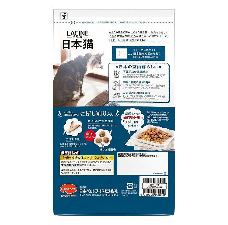 【8個セット】 日本ペットフード ラシーネ 日本猫 にぼし削り入り 600g【ポイント10倍】 【送料無料】