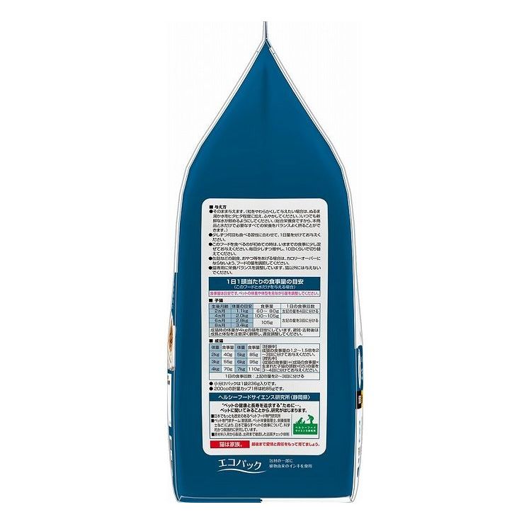 たんぱく質27.0%以上、脂質10.5%以上、粗繊維3.0%以下、灰分9.0%以下、水分10.0%以下、カルシウム1.0%以上、リン0.8%以上、マグネシウム0.10%(標準値)